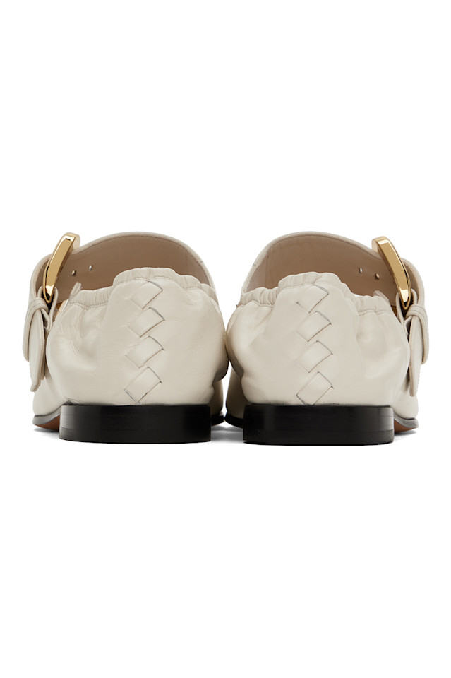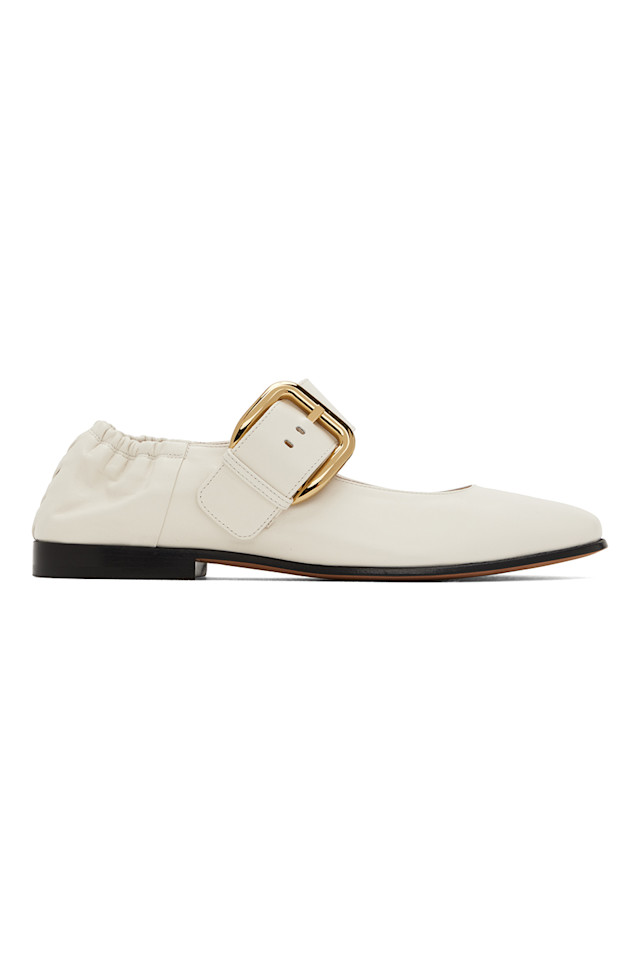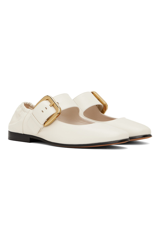 Балетки в стиле Мэри Джейн из зернистой телячьей кожи, кремового оттенка.
