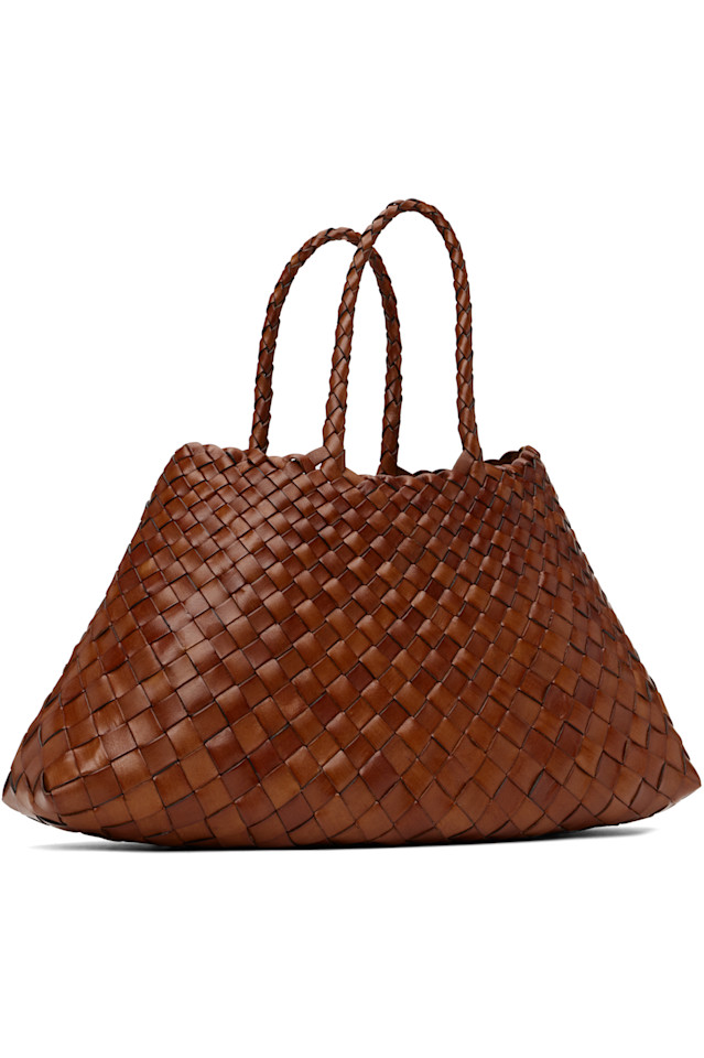 Сумка-тоут ручной работы из плетеной буйволиной кожи коричневого цвета.