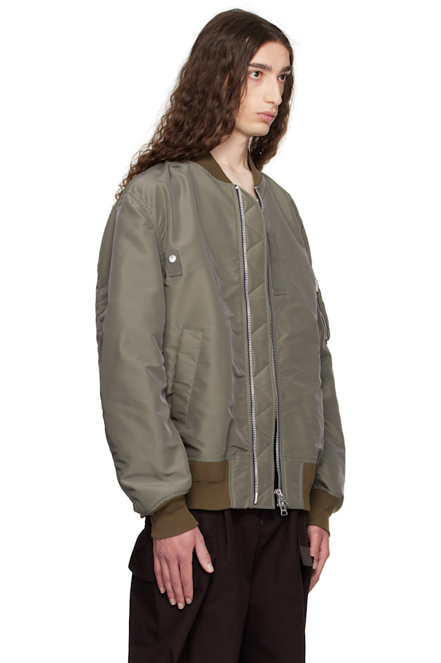 Нейлоновая бомбер куртка в рубчик Sacai, цвет taupe