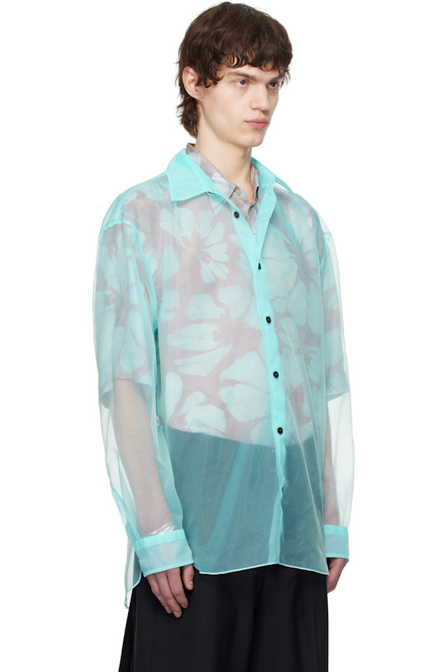 Органзовая рубашка Dries Van Noten, цвет turquoise