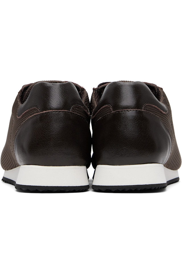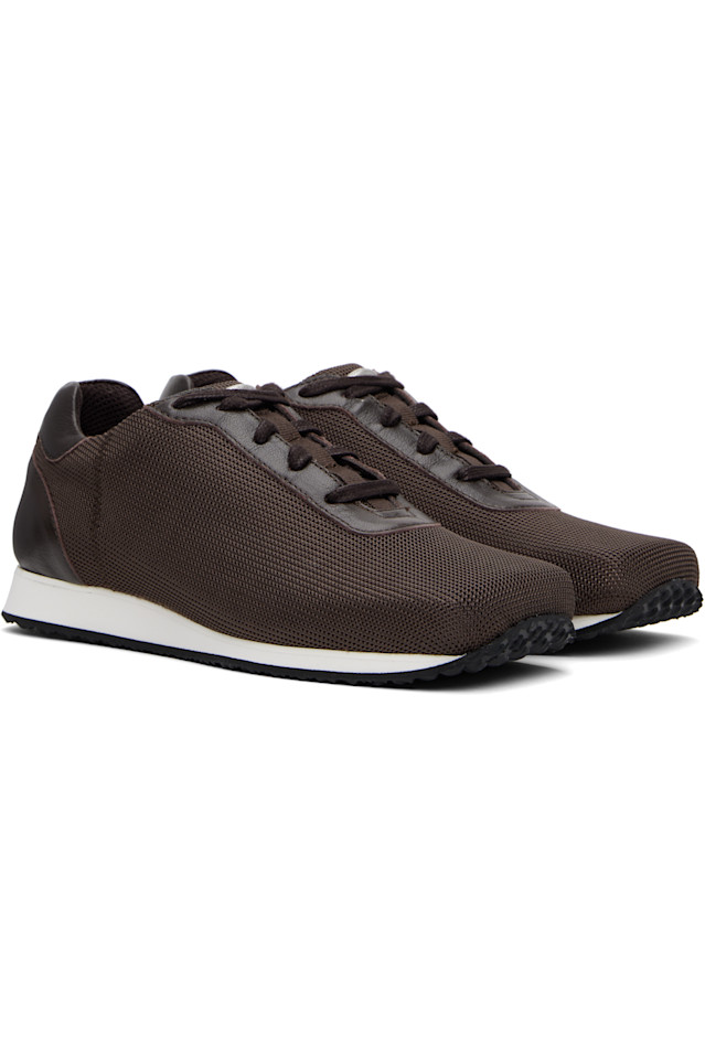 Низкие сетчатые кроссовки коричневого цвета.