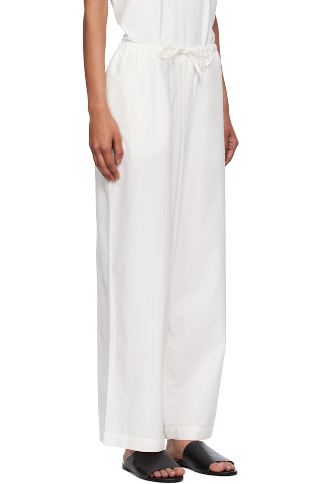 Домашние брюки из поплина из органического хлопка персикового цвета.