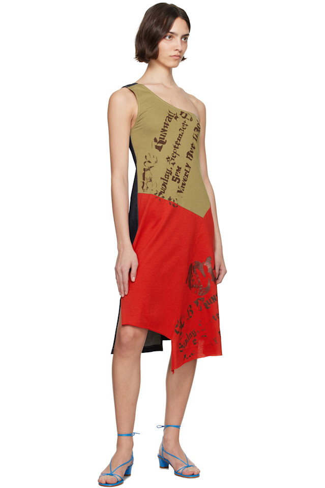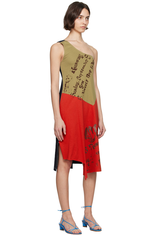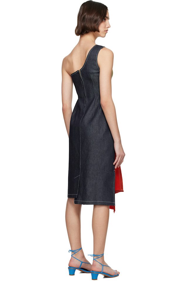 Платье миди из хлопкового трикотажа и неэластичного денима.