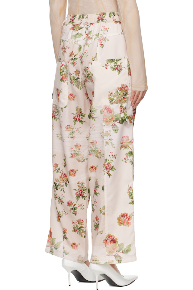 Широкие брюки из полиэстерового атласа. Цветочный рисунок по всему изделию.