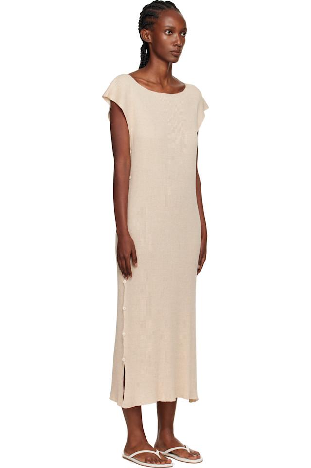Платье макси из смеси льна и органического хлопка в рубчик.
