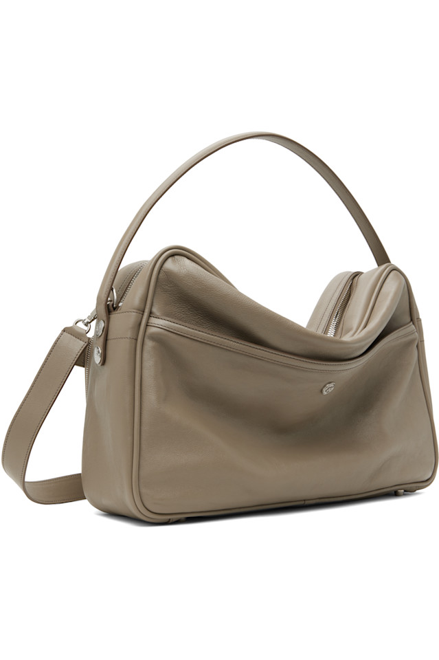 Сумка через плечо из полированной зернистой телячьей кожи серо-коричневого цвета.