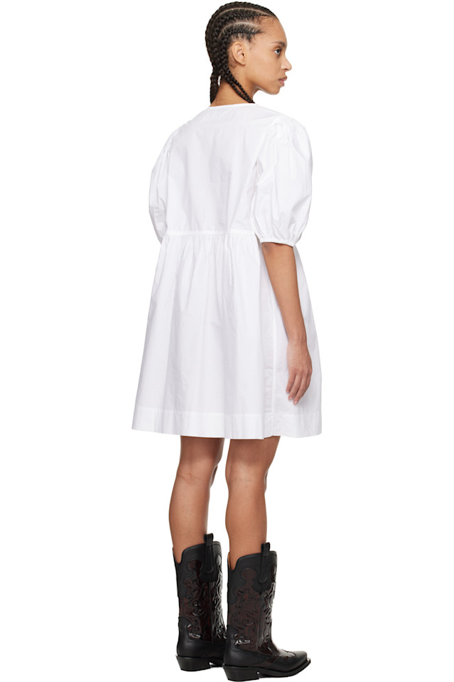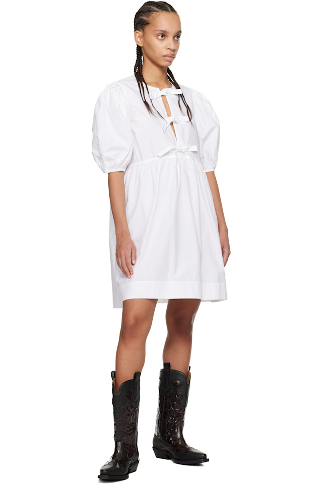 Хлопковое поплиновое мини-платье с завязками Ganni, белый