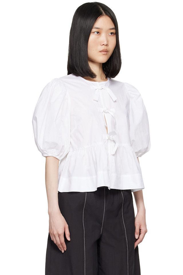 Блузка с пеплумом и галстуком Ganni, белый