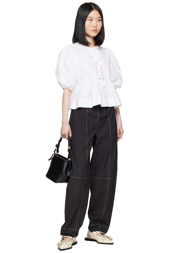 Блузка с пеплумом и галстуком Ganni, белый 10 819₽