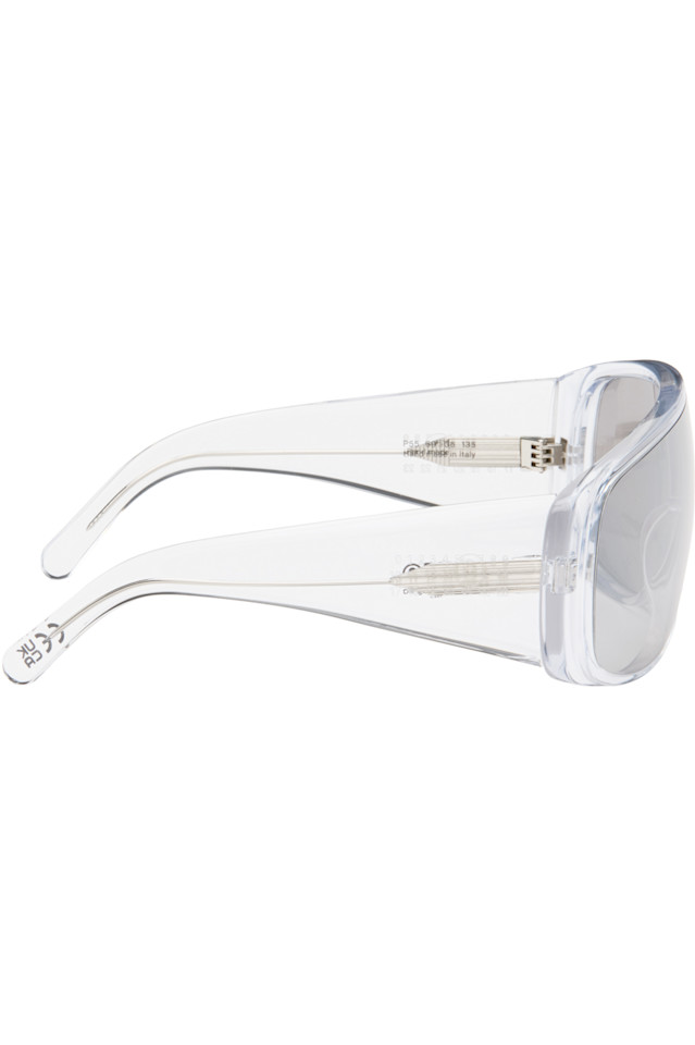 Солнцезащитные очки ручной работы в прозрачной оправе из ацетата в форме щитка.