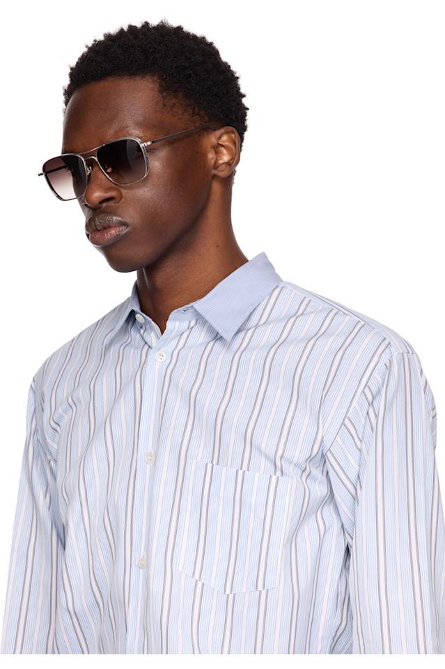 Солнцезащитные очки в прямоугольной титановой оправе серебристого тона, изготовленные вручную.