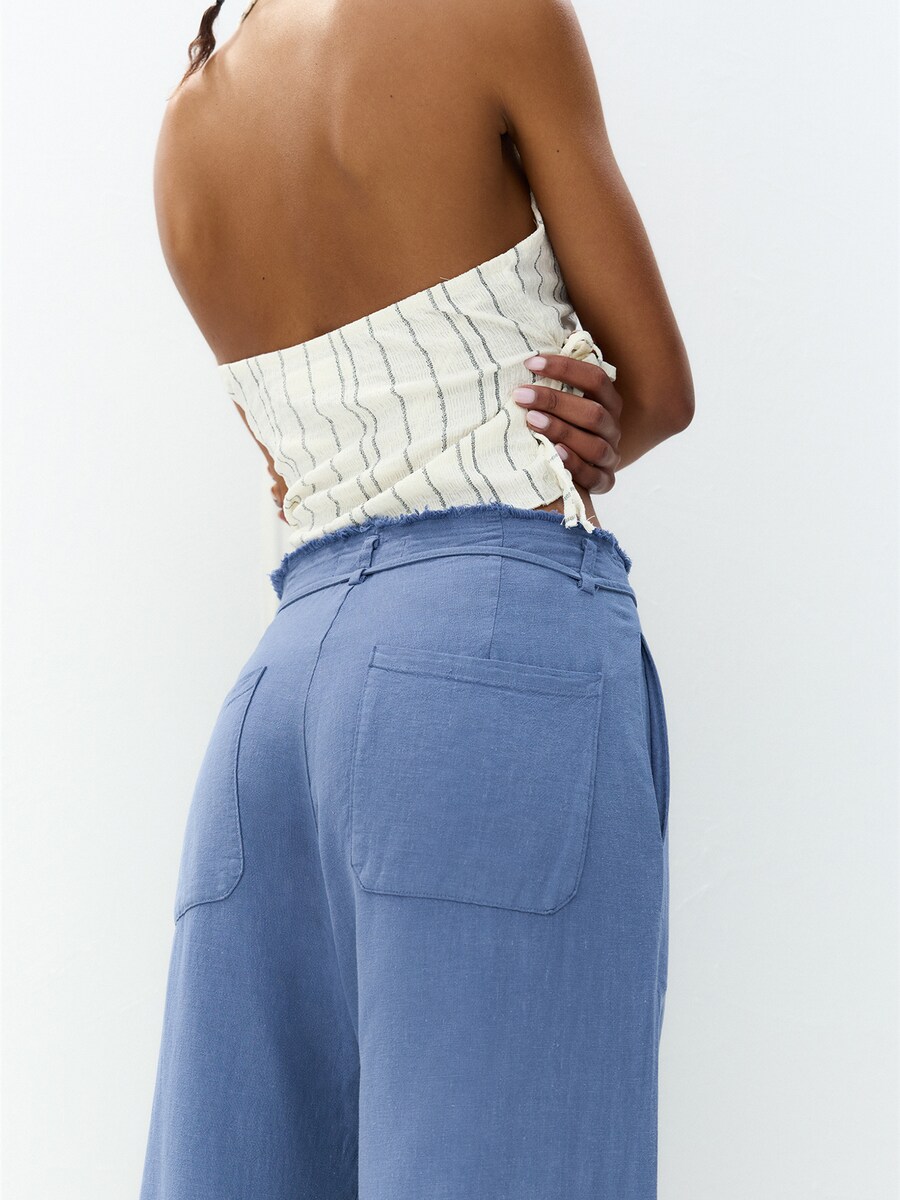 Широкие брюки Pull&Bear, синий деним 3 293₽