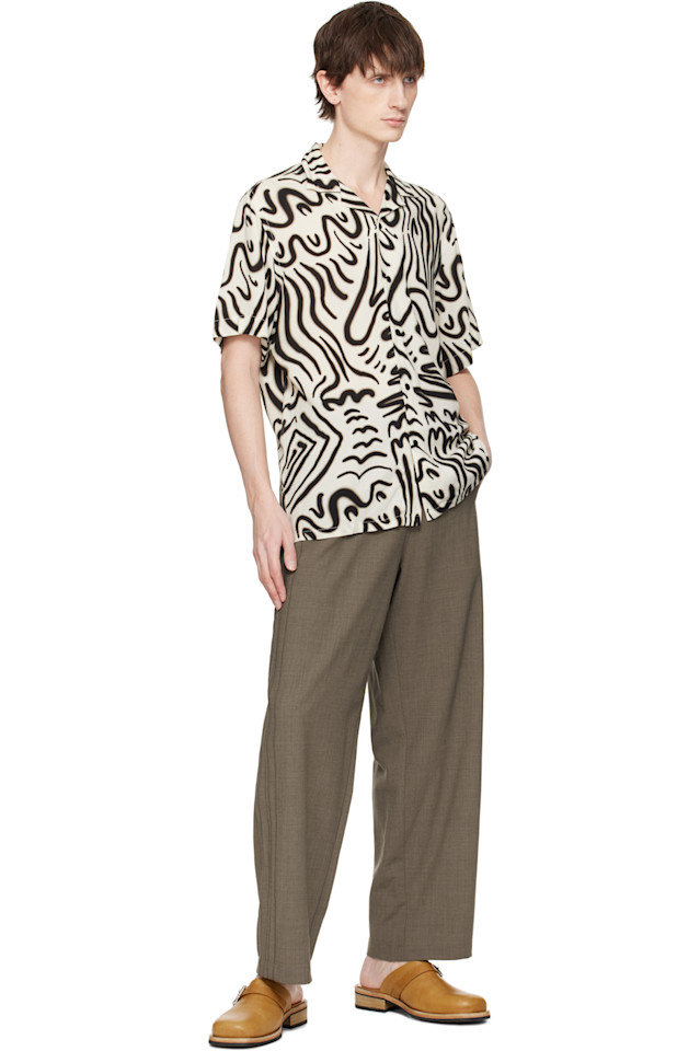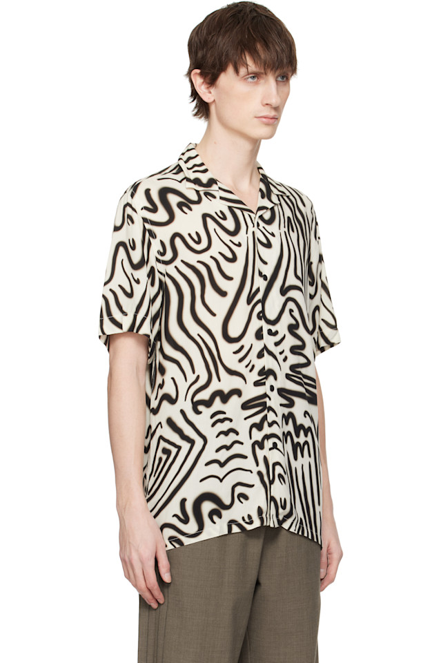 Легкая рубашка из вискозного поплина. Графический рисунок напечатан по всей длине.