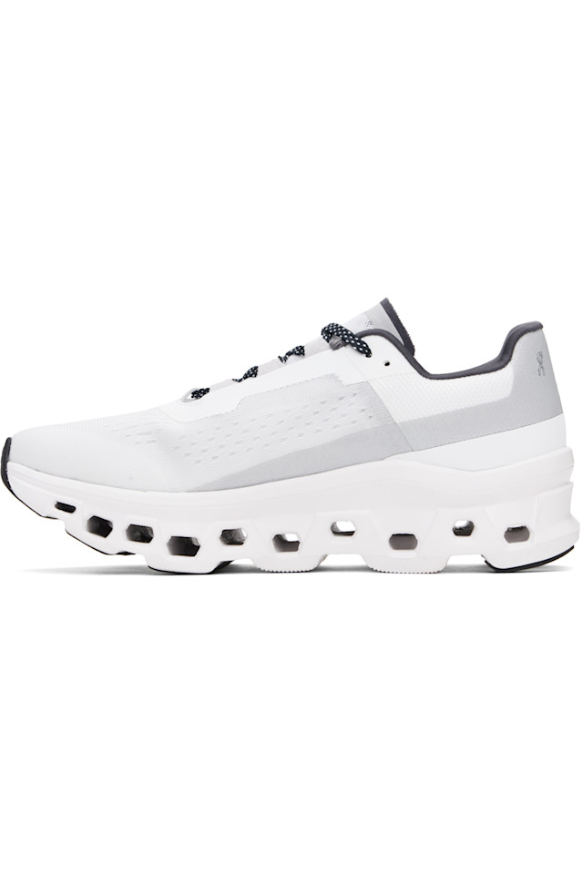 Низкие кроссовки из переработанной сетки белого и серого цветов.