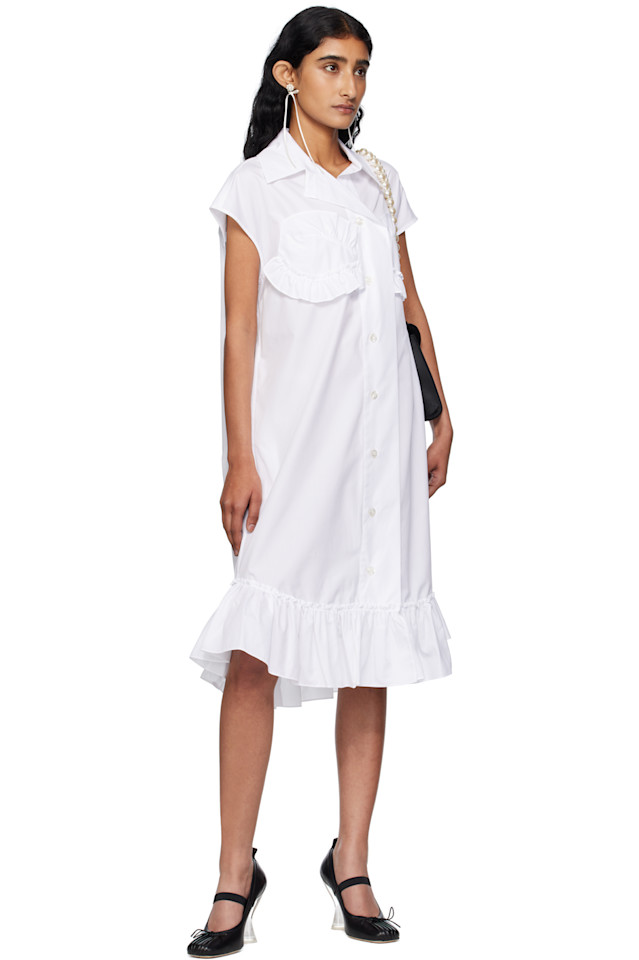 Миди-платье без рукавов с рюшами на лифе Simone Rocha, белый