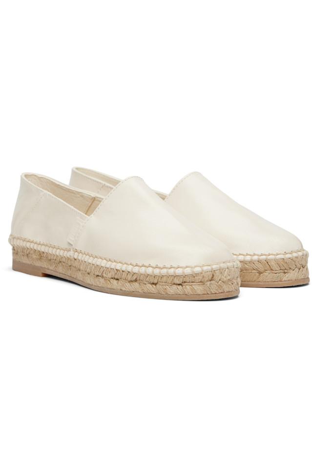 Эспадрильи из полированной кожи с потрескавшейся текстурой, кремового цвета.