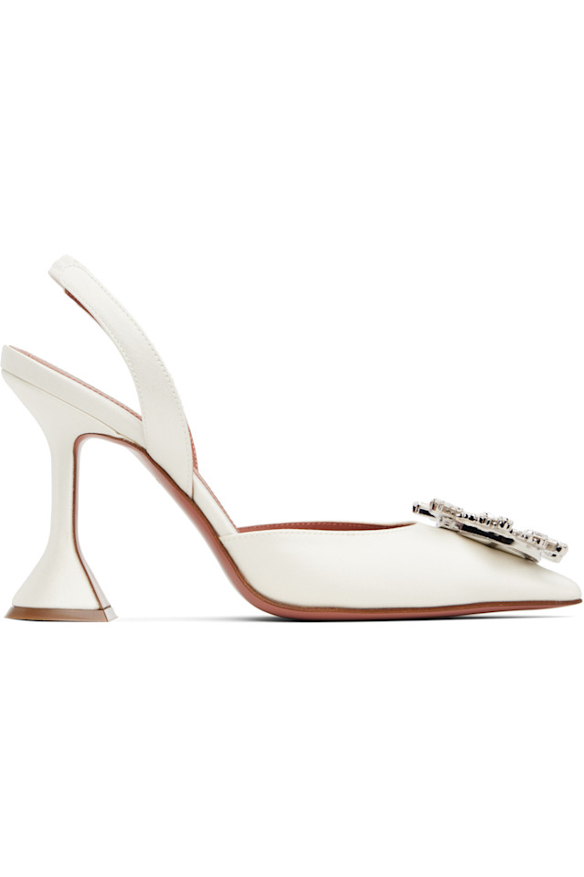 Каблуки из шелкового атласа белого цвета.