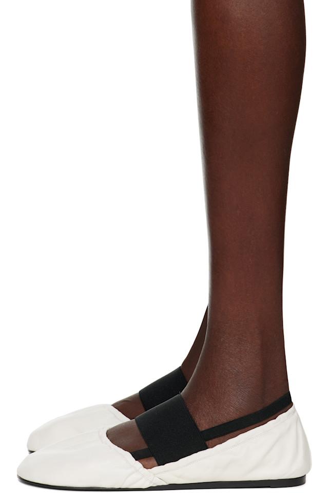 Балетки Мэри Джейн из полированной кожи ягнёнка, белого цвета.