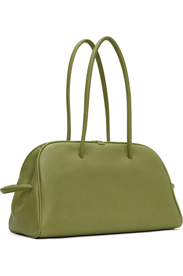Сумка с ручкой сверху из зернистой телячьей кожи зеленого цвета.