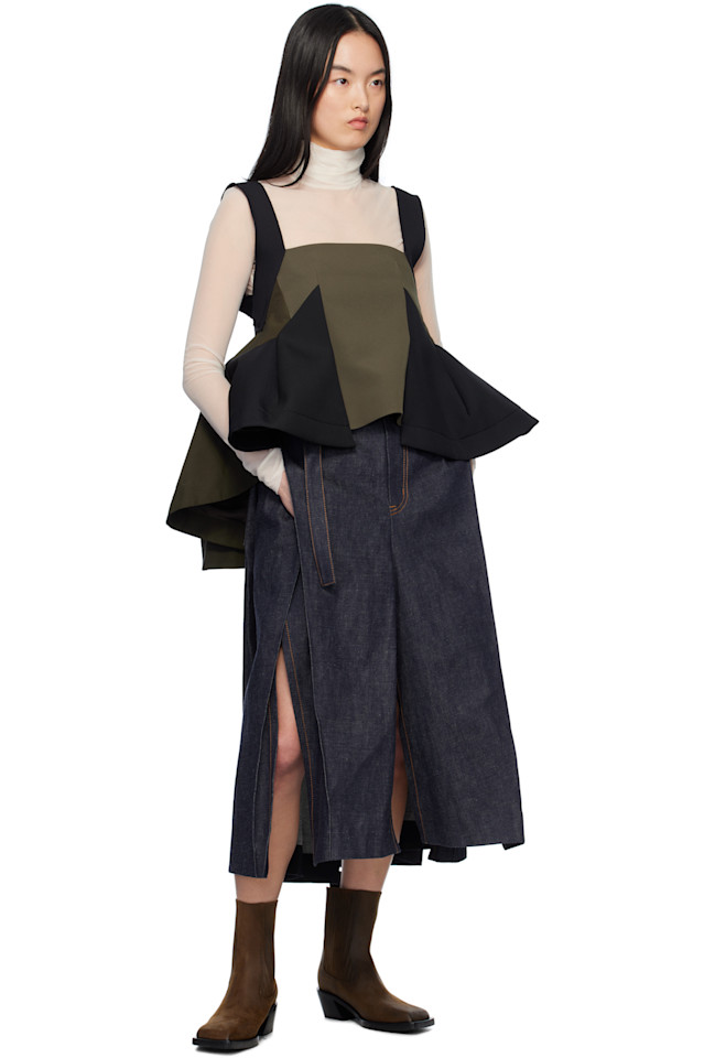Миди-юбка из смесового денима Sacai, индиго 28 993₽