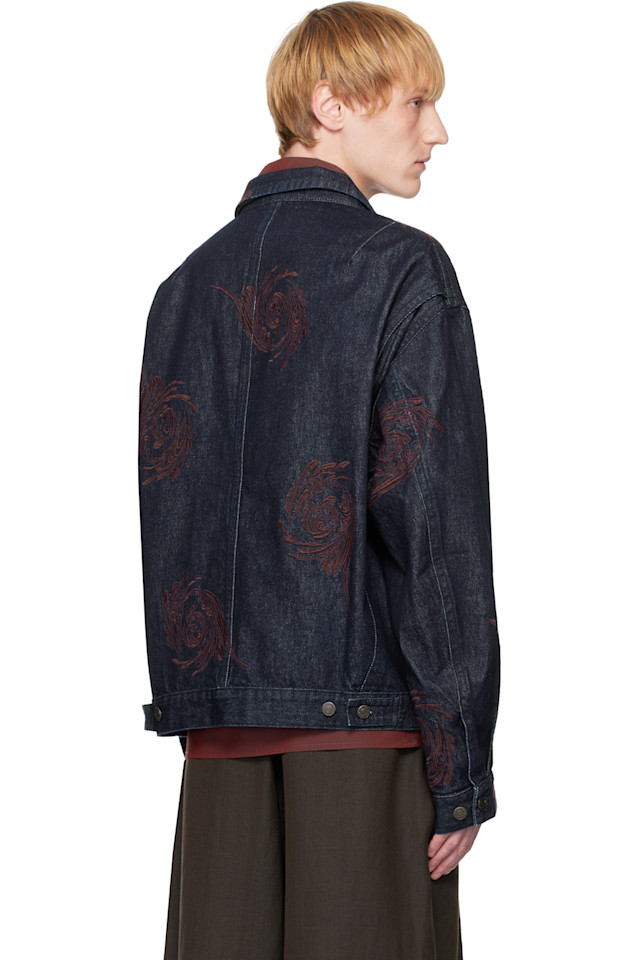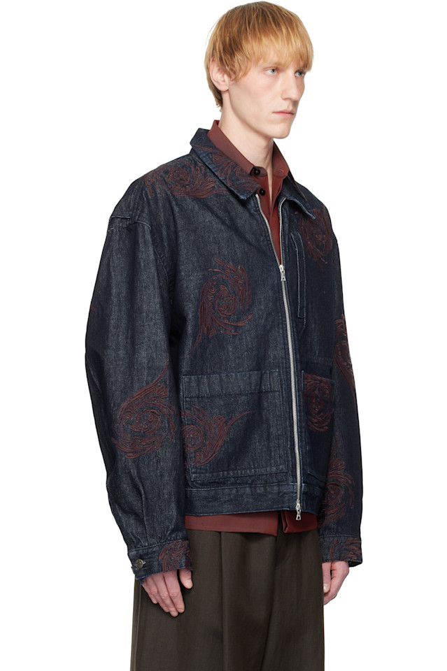 Джинсовая куртка с вышитым узором Dries Van Noten, индиго