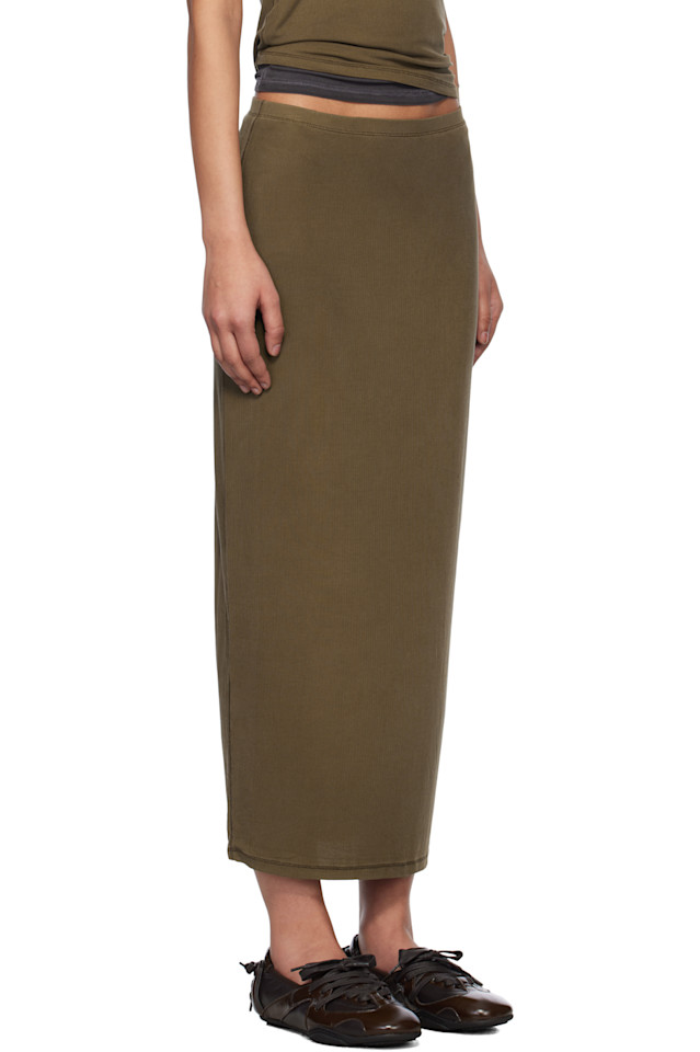 Юбка миди из эластичного трикотажного полотна купро в рубчик.