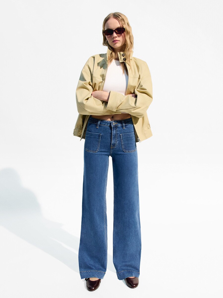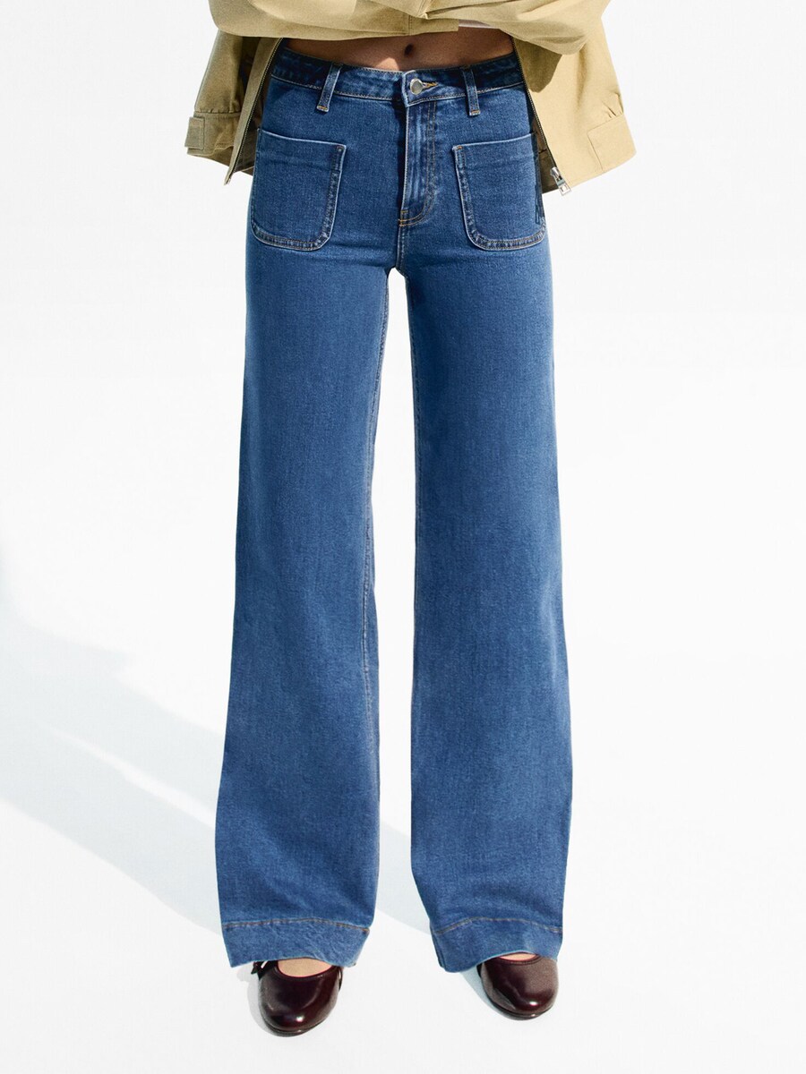Джинсы с широкими штанинами Bershka, синий деним 5 625₽