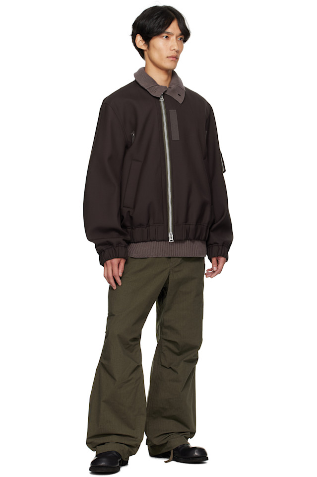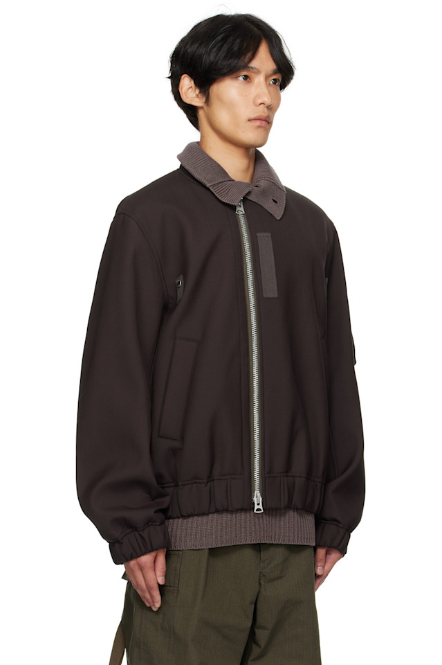 Блузон-бомбер из костюмной ткани Sacai, коричневый