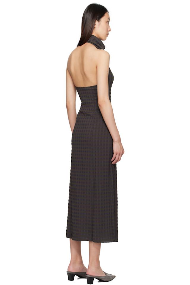 Платье макси из эластичной вискозы с сирсакером. Узор в клетку по всему изделию.