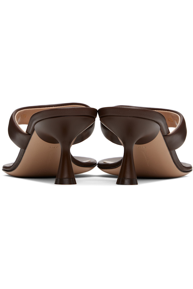 Босоножки на каблуке из полированной кожи наппа ручной работы коричневого цвета.
