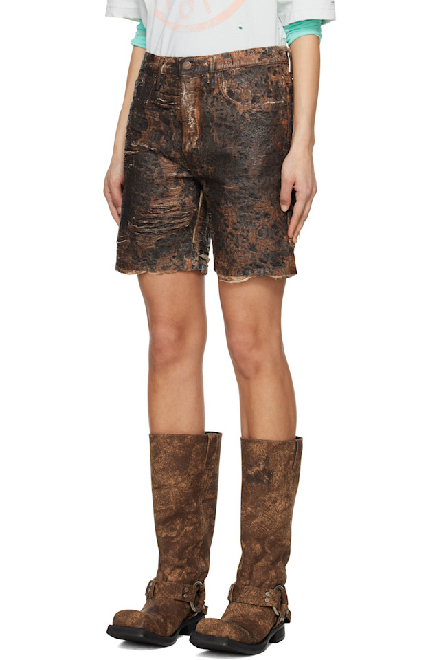 Монограмменные джинсовые шорты свободного кроя Acne Studios, коричневый