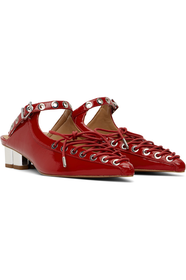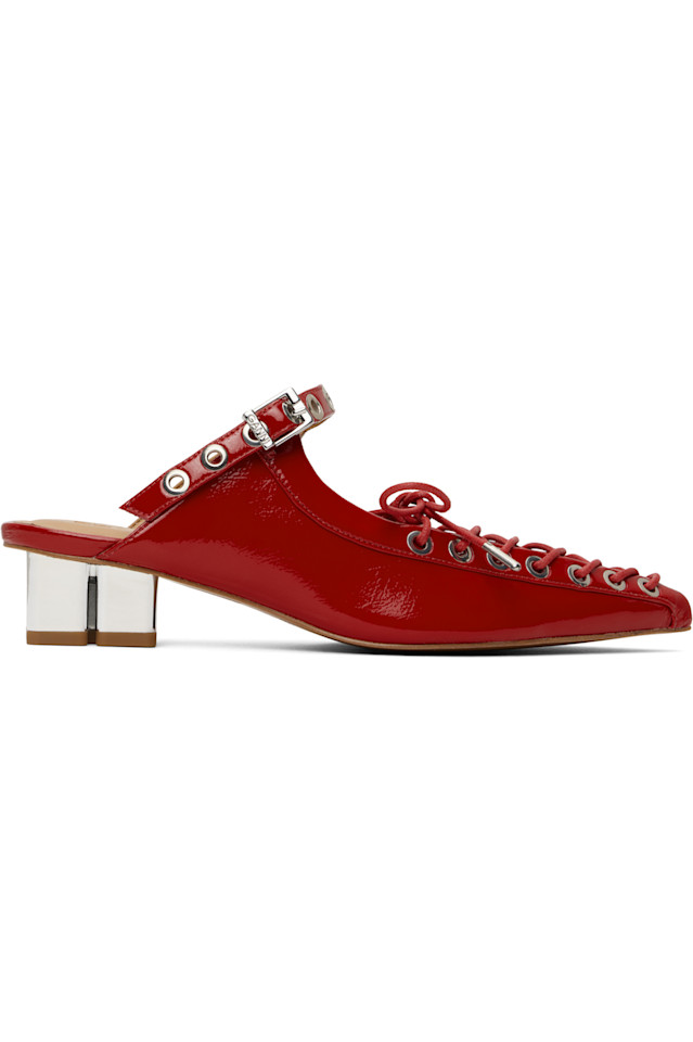 Мюли из жатой лакированной искусственной кожи красного цвета.