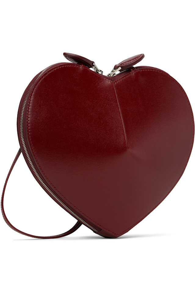 Сумка через плечо в форме сердца из полированной телячьей кожи.