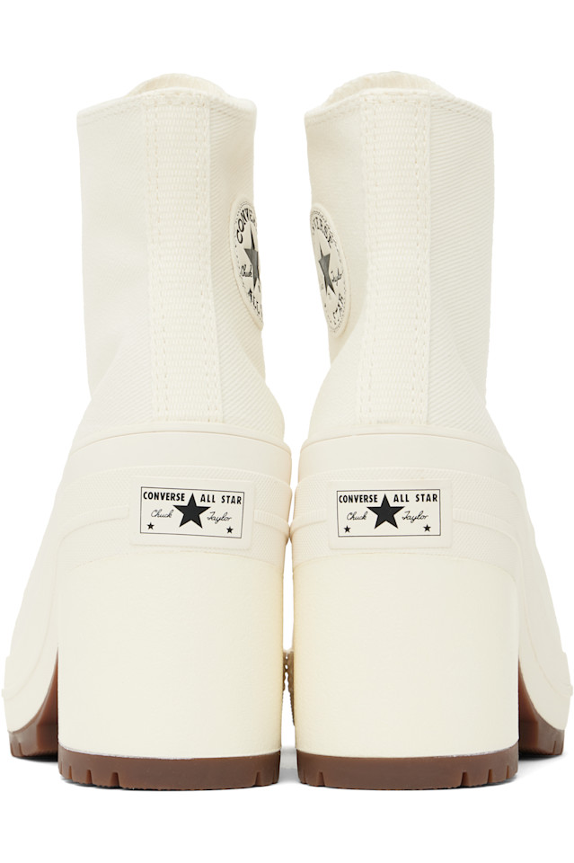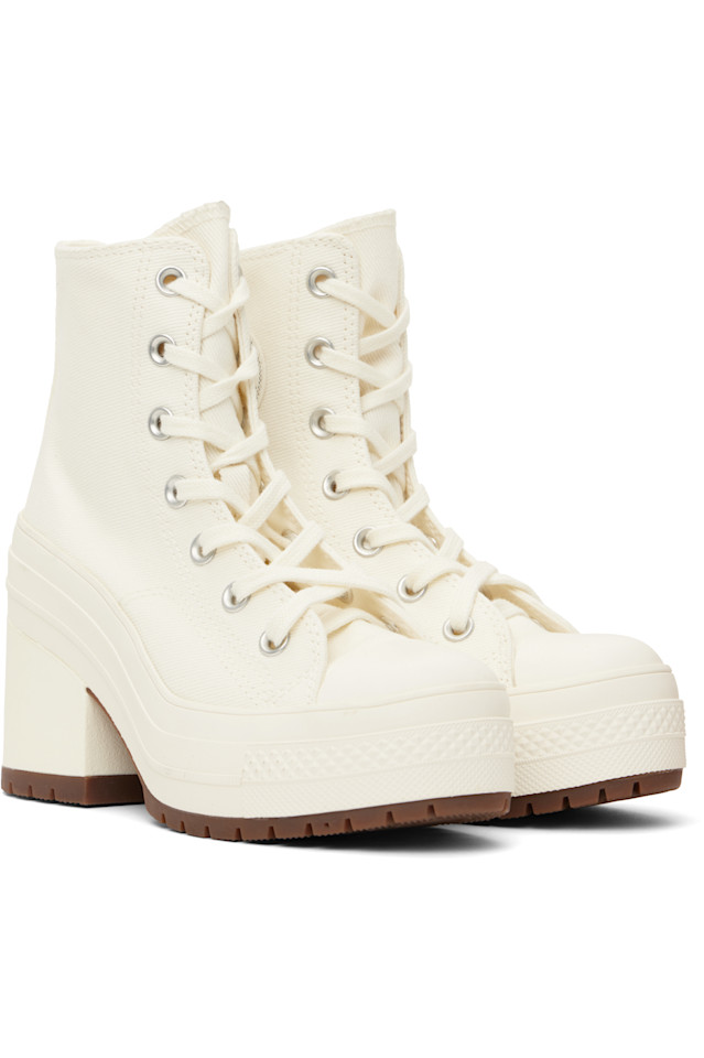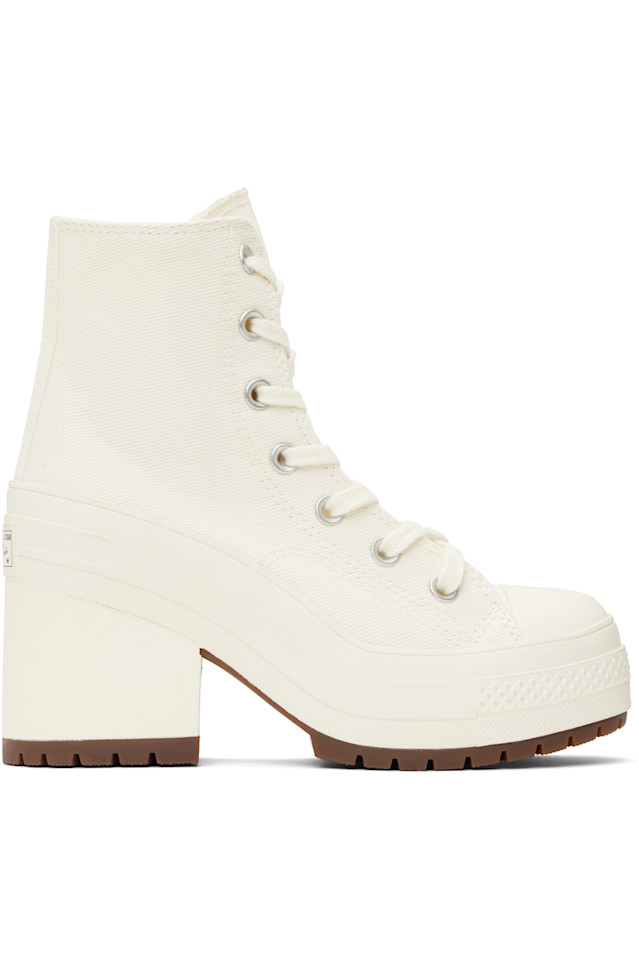 Кроссовки из хлопковой саржи белого цвета на каблуке.