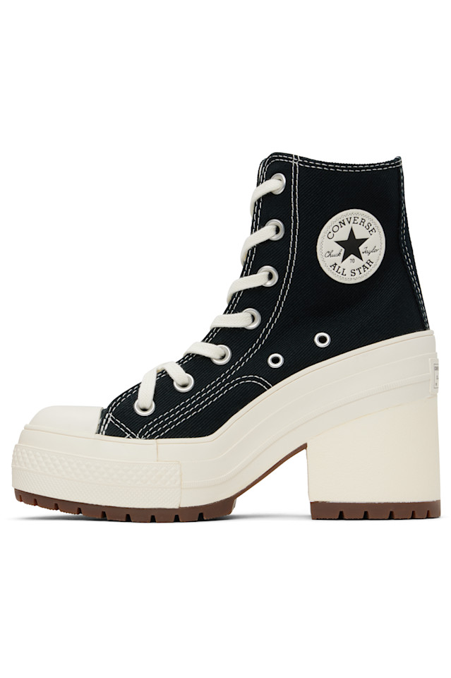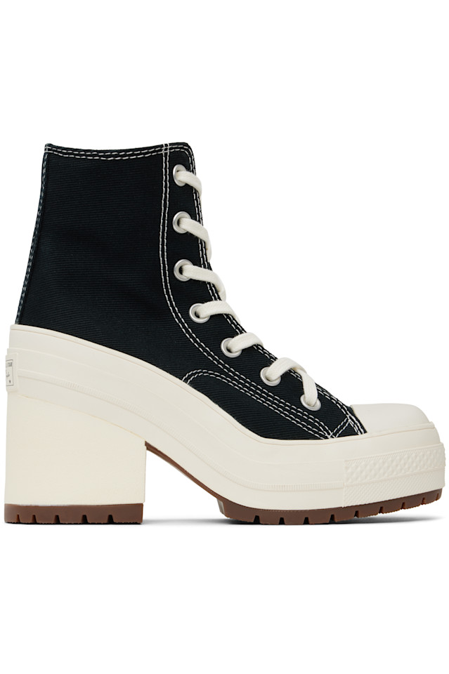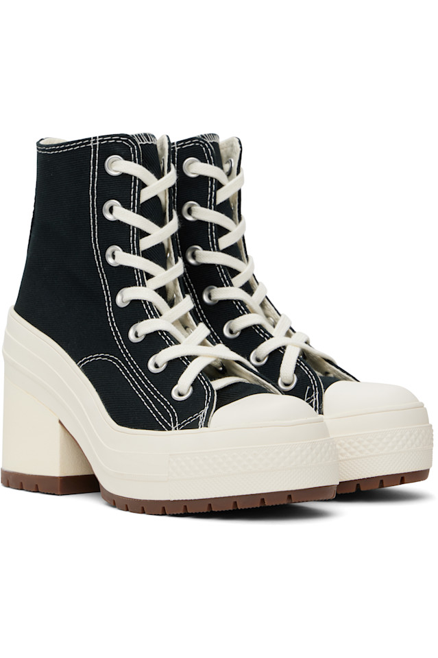 Кроссовки из хлопковой саржи черного цвета на каблуке.