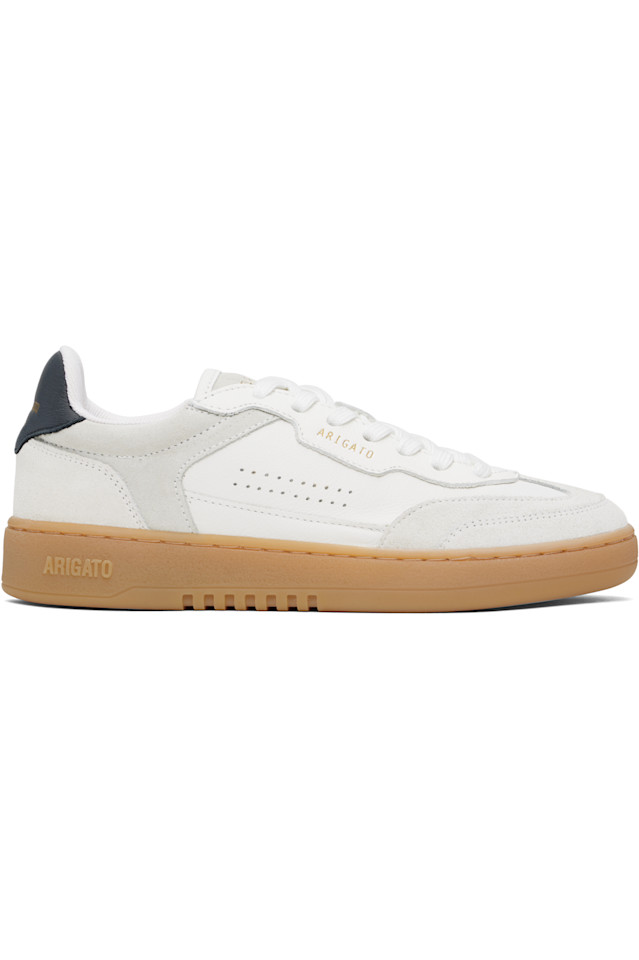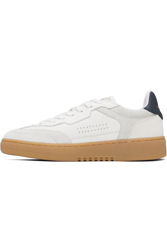 Низкие кроссовки ручной работы из зернистой кожи и замши белого и серого цветов.