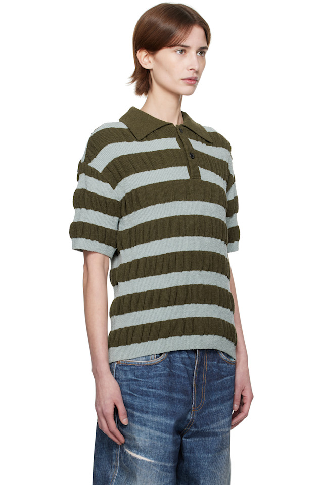 Поло из фактурной трикотажной ткани в рубчик из смеси хлопка и нейлона. Полоски по всему изделию.