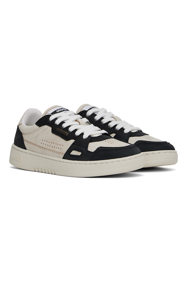 Низкие кроссовки из полированной кожи, замши и парусины SEAQUAL YARN бежевого и черного цветов.