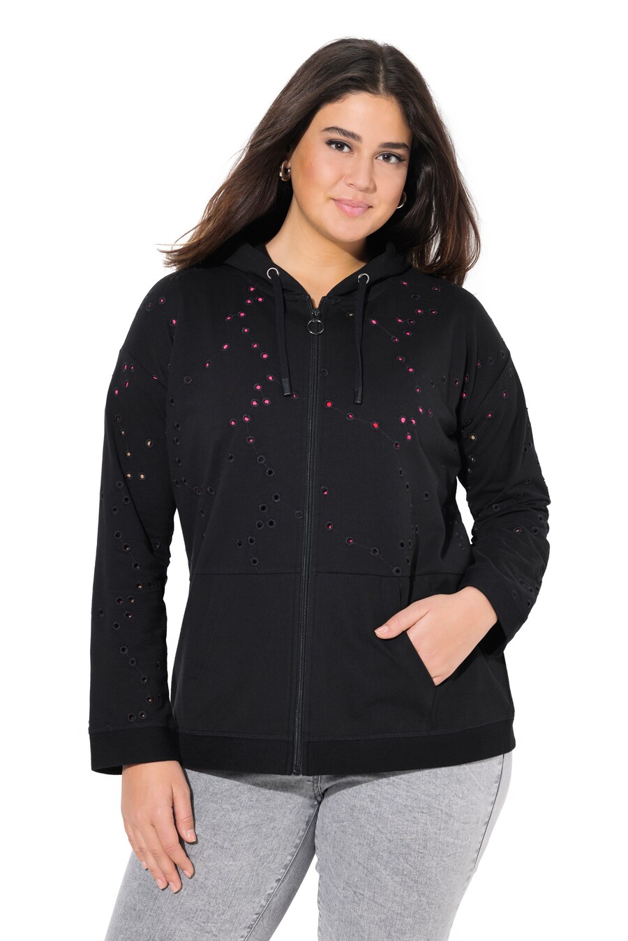 Толстовка с капюшоном на молнии Ulla Popken, черный