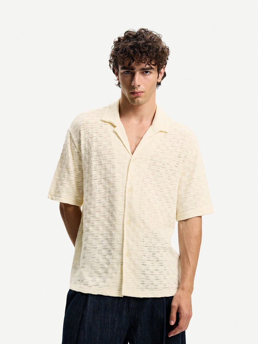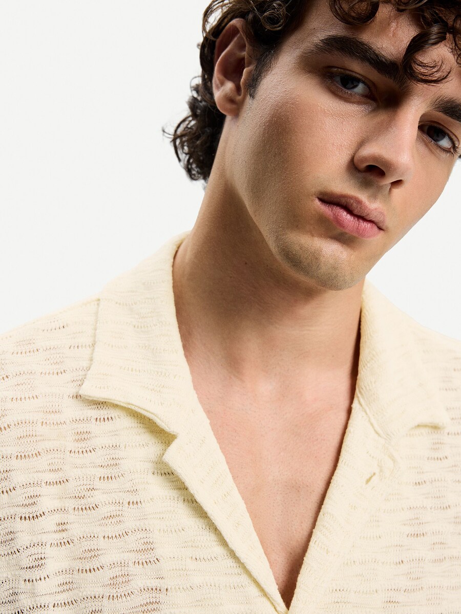 Рубашка на пуговицах Comfort fit Bershka, бежевый 2 969₽