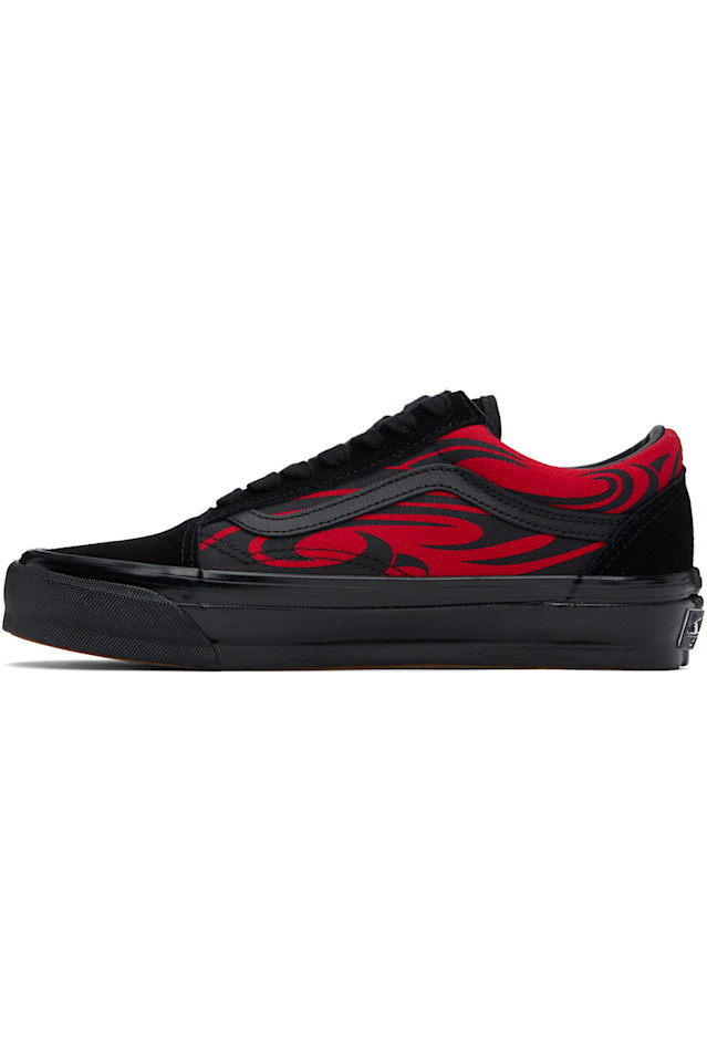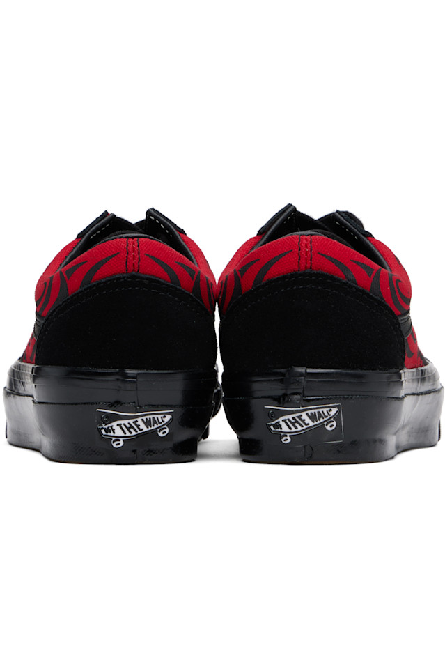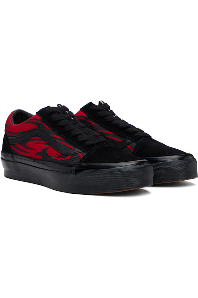 Низкие кроссовки из замши и парусины плотностью 8 унций черного и красного цветов.
