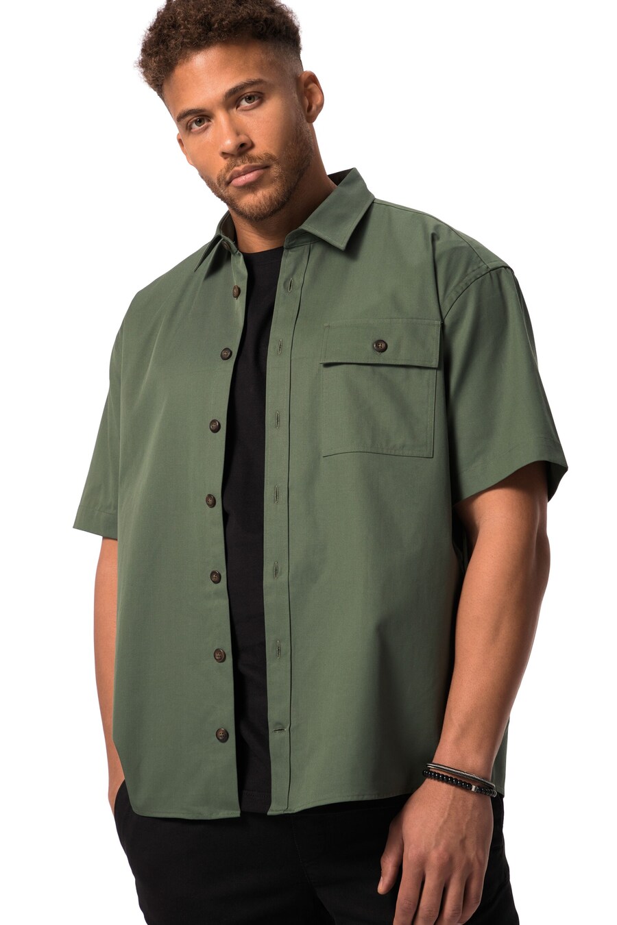 Рубашка на пуговицах классического кроя STHUGE, хаки