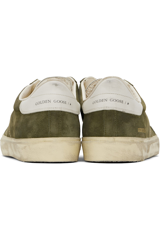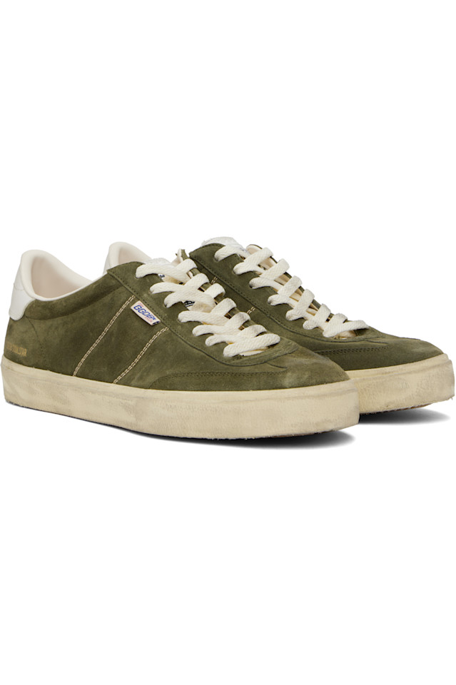 Низкие замшевые кеды цвета хаки, изготовленные вручную.