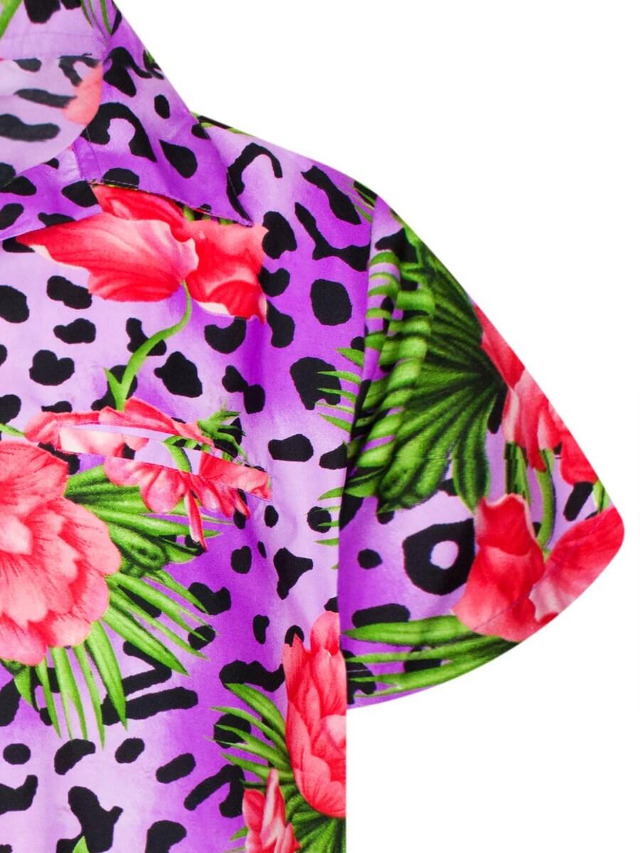 Рубашка King Kameha Leopard Flowers, фиолетовый