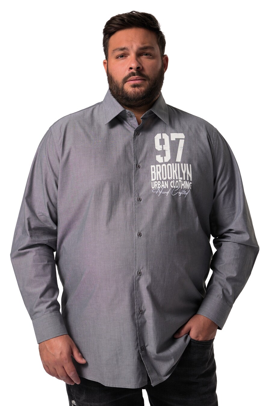 Рубашка на пуговицах классического кроя Men Plus, серый
