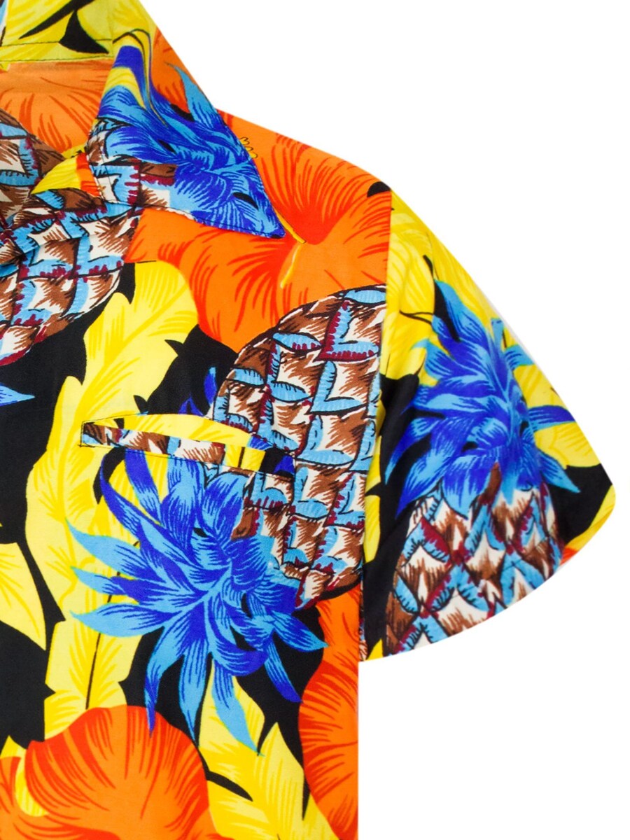Рубашка King Kameha Pineapple Hibiscus Black Line, желтый