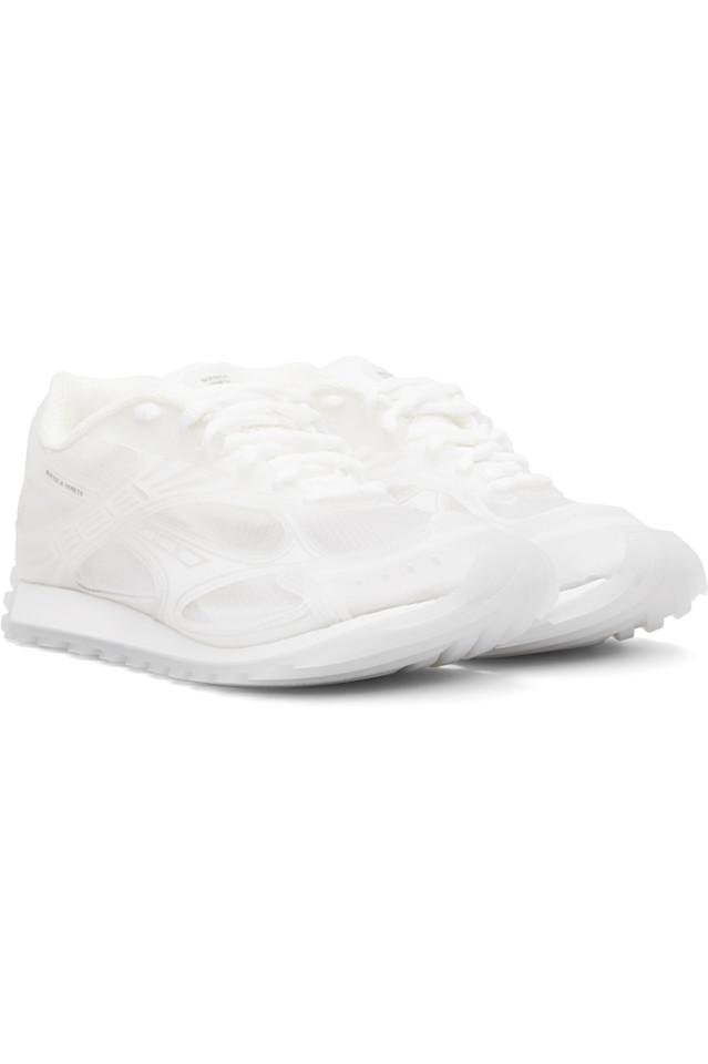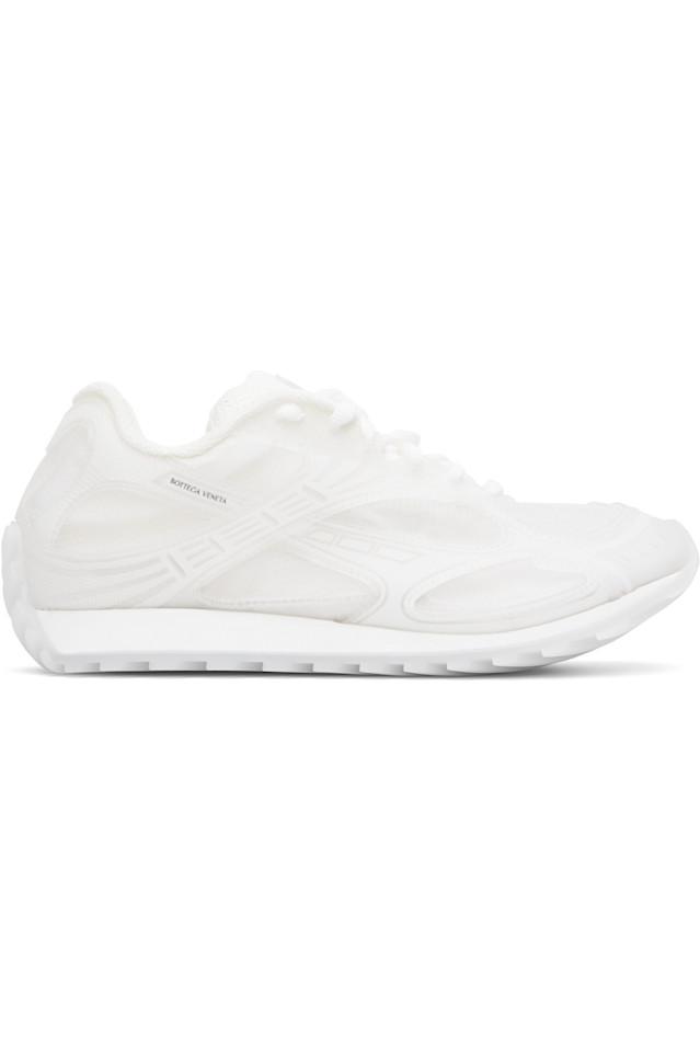 Низкие кроссовки из полупрозрачной сетки и резины белого цвета.