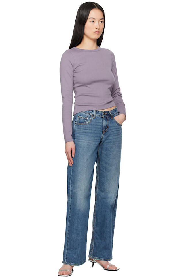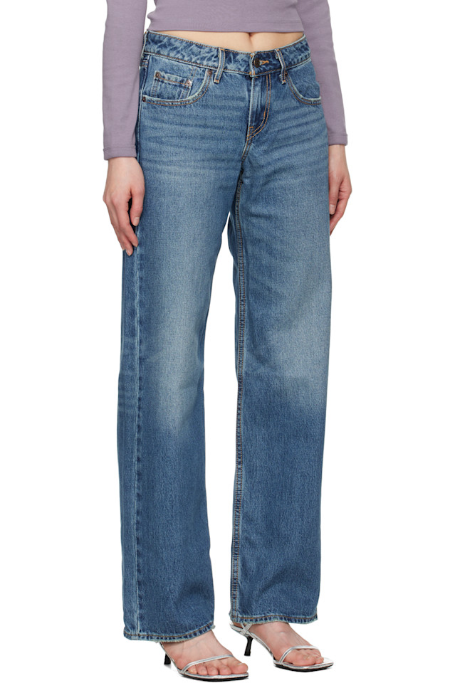 Джинсы свободного кроя прямого кроя из неэластичного денима. Потертости, заломы и лёгкие потертости по всей длине.