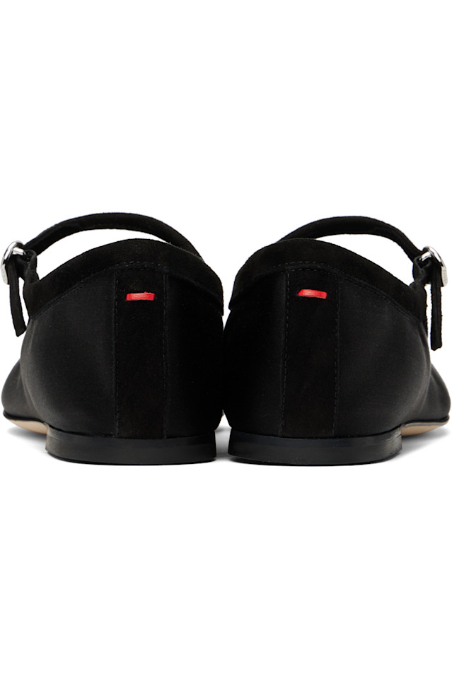 Балетки в стиле Мэри-Джейн из атласа и лайковой замши, черного цвета.
