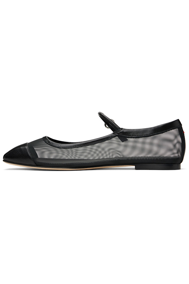 Балетки в стиле Мэри Джейн из полупрозрачной сетки и полированной кожи наппа, черного цвета.